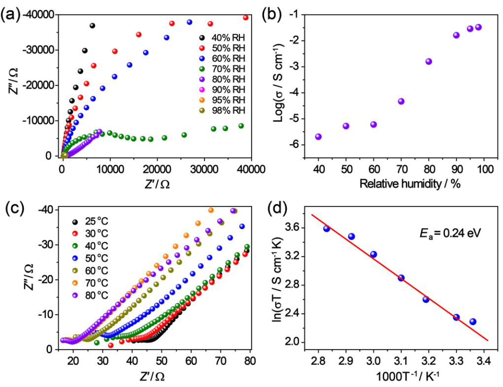 该论文报道了一例240核的巨型多钼酸盐笼(Mo240),其具有罕见的、几乎规则的五边形十二面体结构和非常大的中空敞开内腔(内径1.8 纳米),是目前报道的核数和对称性最高的中空敞开十二面体笼。此外,该化合物具有良好的结构稳定性,并且在高温高湿度下表现出优异的质子传导性能(1.03 × 10-1 S cm-1)。