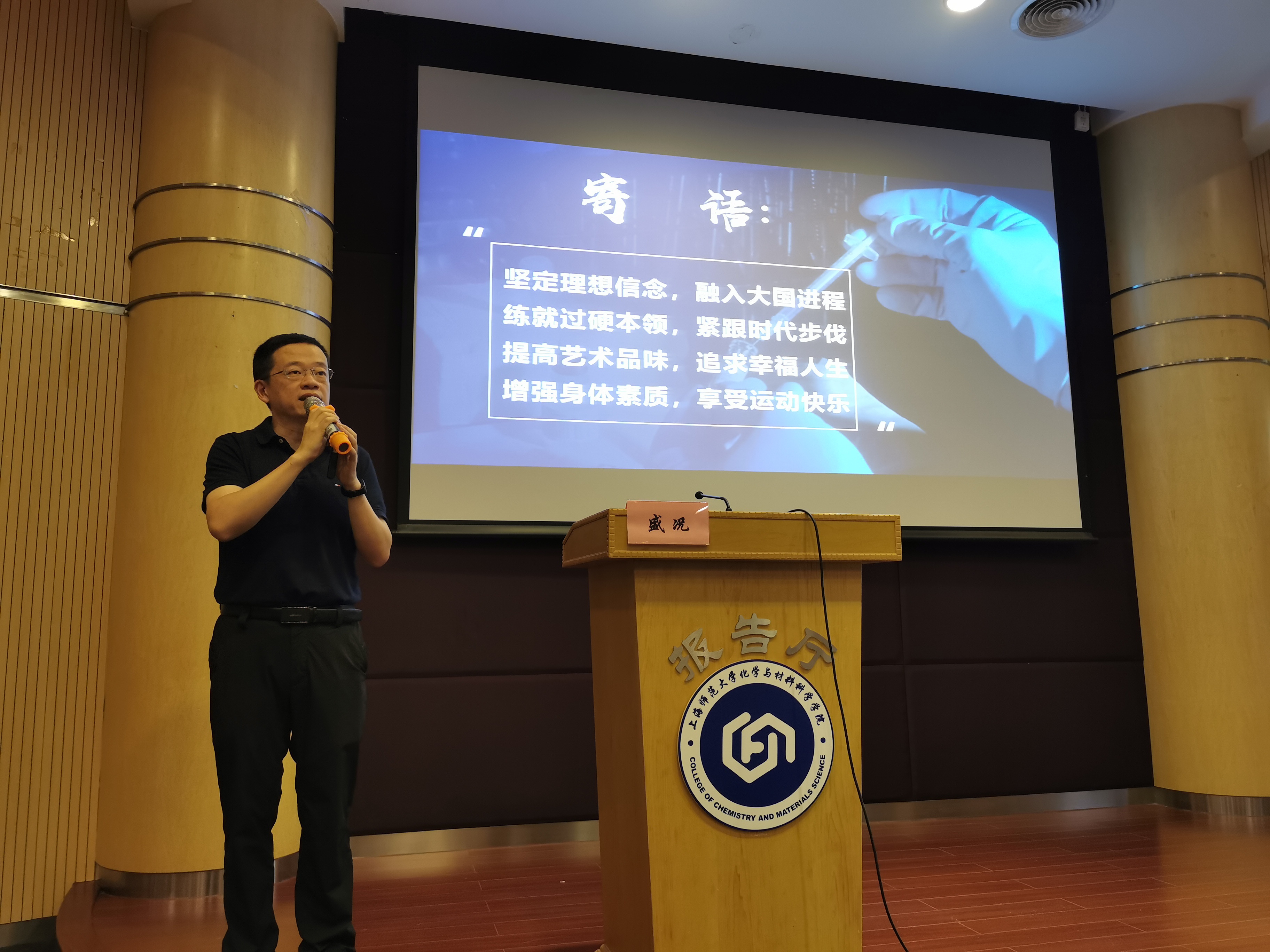 9月17日下午,海角网 2023级本科新生开学典礼暨专业认同教育在奉贤校区图文中心二楼报告厅隆重举行。海角网 党委书记盛况老师,副院长郎万中老师,应用化学专业负责人程探宇老师,化学工程与工艺专业负责人吴建民老师,应用化学拔尖班学业导师邓清海老师,2023级荣誉班导师邓繁艳、陈阳、汤婉鑫、张旋、朱明祥,奉贤校区学生工作负责人、2020级辅导员张旖旎老师,海角网 团委书记、2021级辅导员杨浩老师,海角网 资助专项辅导员、2022级辅导员张亚玲老师,2023级兼职辅导员宁恬恬老师出席了新生开学典礼。典礼由海角网 党委副书记、副院长臧艳雯主持。