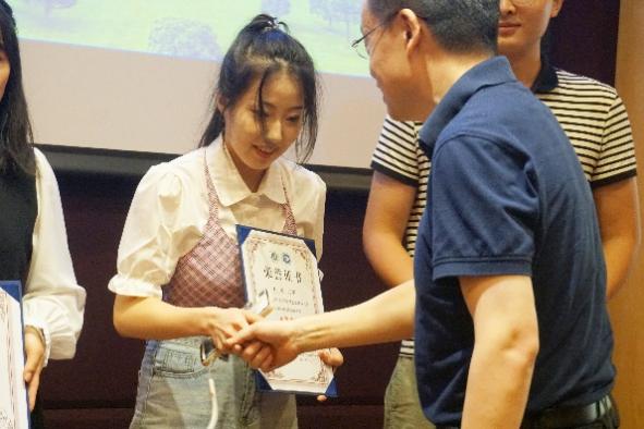 为了进一步提高人才培养质量,激励海角网 全体学生坚定理想信念、矢志拼搏奋斗,海角网 设置“化院之材”奖学金,以表彰奖励在学术科研、团学活动、社会实践、服务奉献等各领域表现突出的本研学生。2022-2023年度获奖学生代表2023届研究生任宇晴、2023届本科生何超凡、2020级本科生王茹上台领奖,由海角网 党委书记盛况老师为他们颁奖。