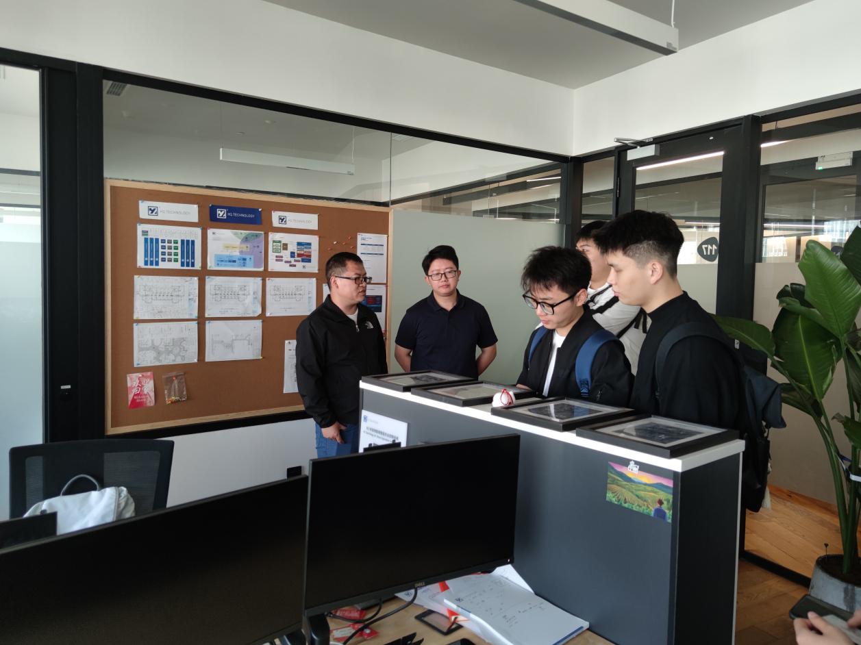 在带领同学们简单参观了公司办公环境后,何炼首先以自己在师大三年的研究生生活作为切入点,向大家介绍了自己从最初的课题研究,到研二进入工厂学习生产技术,再到后来自己创立公司的过程。其中,他着重介绍了自己在校期间参加科创比赛的经历,鼓励同学们在校期间多参加各类创新创业类竞赛,为自身发展积累经验。
