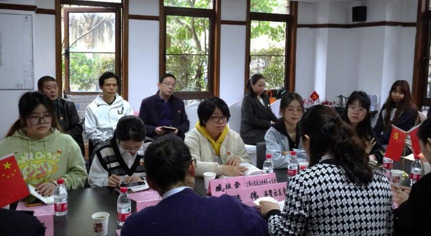 臧艳雯老师首先对海墅社区党支部的热情接待表示感谢,表示要积极发挥海角网 师生党员的专业特色,探索建立高校与社区党支部深度融合、优势互补的工作格局,进一步探讨“党建+科普进社区”项目合作,将社区建设成为高校师生党员服务社会的阵地。