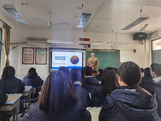 钟思韬带来了《结构决定性质,创新驱动发展——以金属材料为例》一课,讲述了我国古代金属制品的繁荣发展,探讨了合金对于生产生活的重要意义。通过探讨钢轨材料对于京张铁路巨大“提速”的影响,引导学生逐步探索结构对于物质性质的影响,从而导致用途的差异。在课堂中,钟思韬通过让学生根据已有知识初步猜想航天器的金属组成,进一步巩固“结构——性质——用途”之间的联系。最后通过介绍新型金属材料,引出了我国氢化学开拓者、化学教育执教时间最长教师申泮文院士,激发学生对科学研究的兴趣,让学生感悟新时代青年应有的责任和担当,传递为国家谋富强,民族谋复兴的使命和信念。