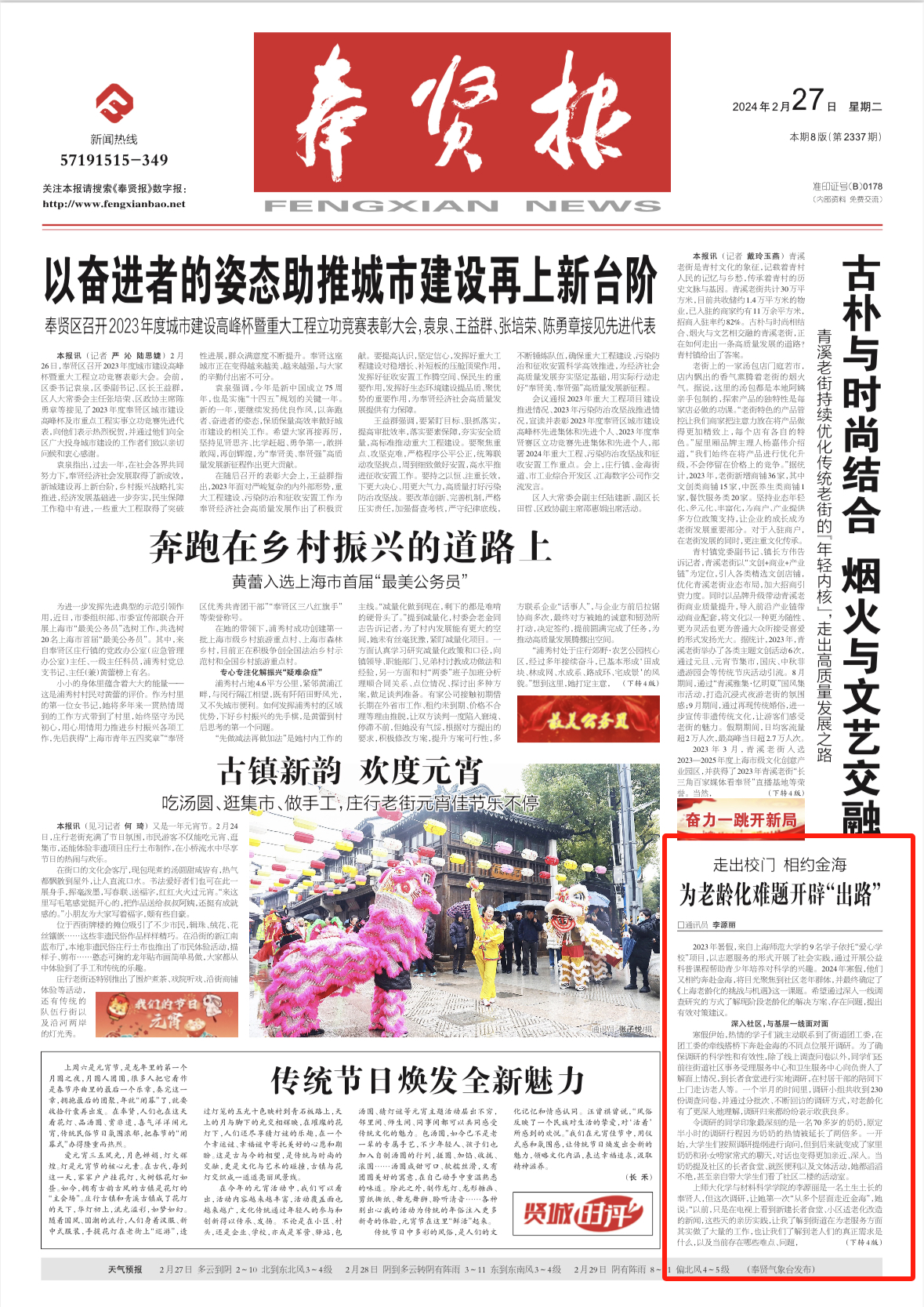(以上内容来源于上海市奉贤报,原载于2024年2月27日《奉贤报》)