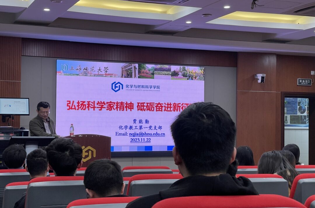 贾能勤老师以“弘扬科学家精神,砥砺奋进新征程”为主题,以诸多科学家故事举例,其中包括邓稼先、郭永怀、钱学森、程开甲四位两弹一星元勋的丰功伟业,带领同学们共同学习“热爱祖国、无私奉献,自力更生、艰苦奋斗,大力协同、勇于登攀”的“两弹一星”精神。贾能勤老师表示,面临很多“卡脖子”技术问题,应当集中力量、形成拳头、重点突破,国家的需要就应该是我们的选择。