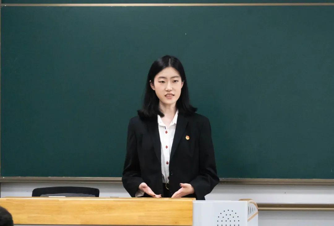 2022级应用化学1班团支书贺念红以“加强基础研究,实现高水平科技自立自强”为题作主题微团课。她表示,新一轮科技革命和产业变革深入发展,学科交叉融合不断推进,科学研究范式发生深刻变革。她以“两弹一星”功勋科学家为例,讲述科学家的人生选择及重大科技成果背后的故事。