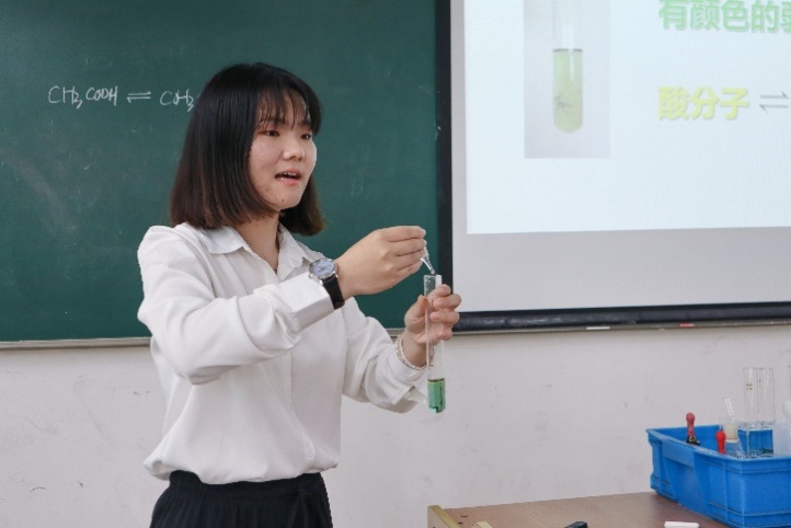 授课过程中,参赛选手与现场同学们积极互动,以提问和学生自主实验来激发同学们学习的积极性和主动性。