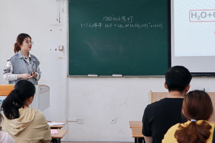 竞赛包括模拟教学、教学设计思想阐述、回答评委提问三个环节。参赛选手们展示了制作精美的课件,摒弃照本宣科的枯燥乏味,对授课内容进行生动讲述,书写工整的板书尽显师范生们扎实的基本功。