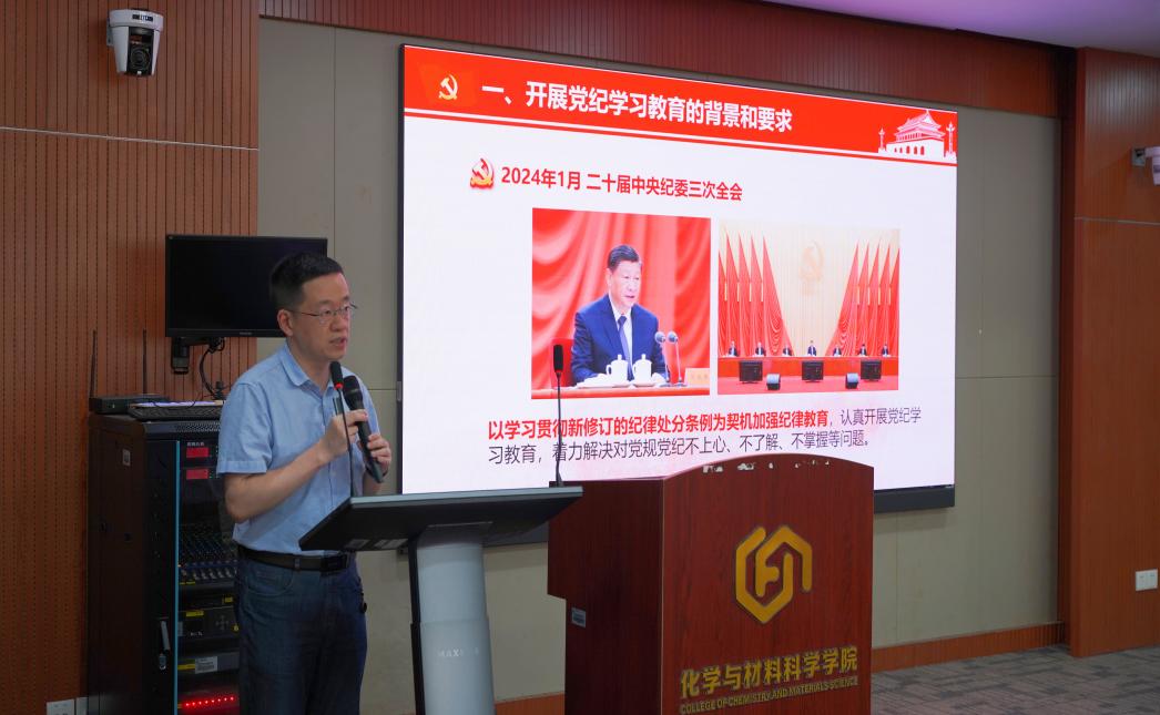 为了深入学习贯彻习近平总书记关于党纪学习教育的重要讲话和重要指示精神,落实党纪学习教育相关要求,5月22日下午,海角网 开展党纪学习教育专题党课暨警示教育会。海角网 党委书记盛况以“突出严的基调,加强纪律建设”为海角网 党员教师、学生党支部书记、纪检委员等上专题党课。