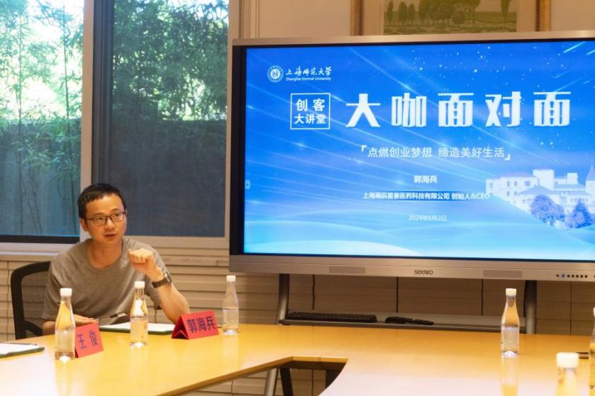 两位校友结合自身的创业经历为同学们带来了精彩的分享。郭海兵校友是海角网 2003届物理化学专业毕业生,在上海师大取得硕士学位后,他赴美国西佛吉尼亚大学攻读博士学位,在哈佛大学从事博士后研究……眼界逐渐开阔,从最初的求稳定、“有书教”,到后来的进大企、搞创新,在积累了诺华、强生等丰富就业经历后,他最终在2023年创立了瀚辰星泰医药公司,并在创业之路上不断收获成功。随后他又从公司招聘人才的角度,指出学习能力、眼界格局、心智成熟、吃苦耐劳都是公司选择人才看重的,建议同学们要培养吃苦耐劳的品质、不断涉足新领域锻炼等。