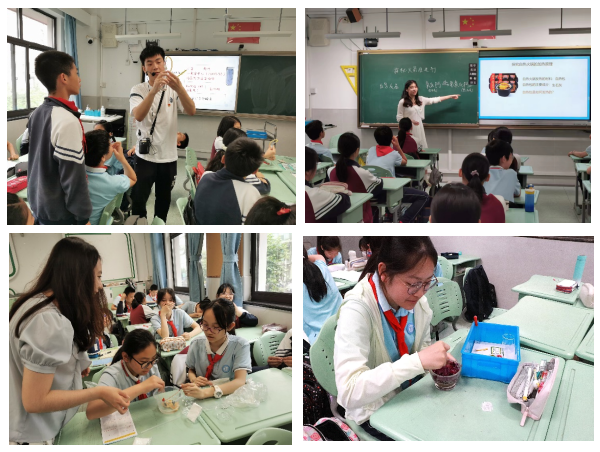 对于学生讲师来说,为初中生讲课程思政是一次全新的体验。学生讲师张文艳分享道:“首次进入初中为同学们带来化学思政课。在踏上讲台后,原先的紧张因一双双求知的眼神与热情的氛围消失了。令我感到惊喜的,是同学们的发散思维,大部分学生课外涉猎十分广泛。在与同学们的互动中,感到了同学们对化学的喜爱和立志为国家做贡献的决心。”