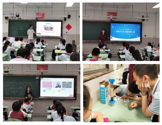 考虑到预初和初一年级的学生还未系统化接受化学学习,七位学生讲师对授课内容进行了相应的调整,将化学知识生活和科技相结合,同时,将爱国主义教育融入到课堂讲授中,营造了沉浸式课堂。学生讲师张文艳带来的《变海水为宝,氯碱强国之路》由“若置身于荒野之中,如何制作一杯柠檬水”开篇,围绕净水、取盐、玻璃展开,进而了解中国氯碱工业的发展,激发学生发散思维,培养学生刻苦钻研、不断进取的精神;学生讲师李泽宇带来的《探究金属的腐蚀与保护》,带领学生们了解金属的保护,同时,认识到我国制造航母过程的艰辛,充分激发了学生的爱国热情;学生讲师周祎玮带来的《探索炸药的前世今生——“炸”通血管,“创”出未来》,通过对烈性炸药主要成分硝酸甘油的药用与爆炸性的研究过程,描绘了一幅现代化工与医药交织的图谱,激发了同学们对化学的强烈求知欲。