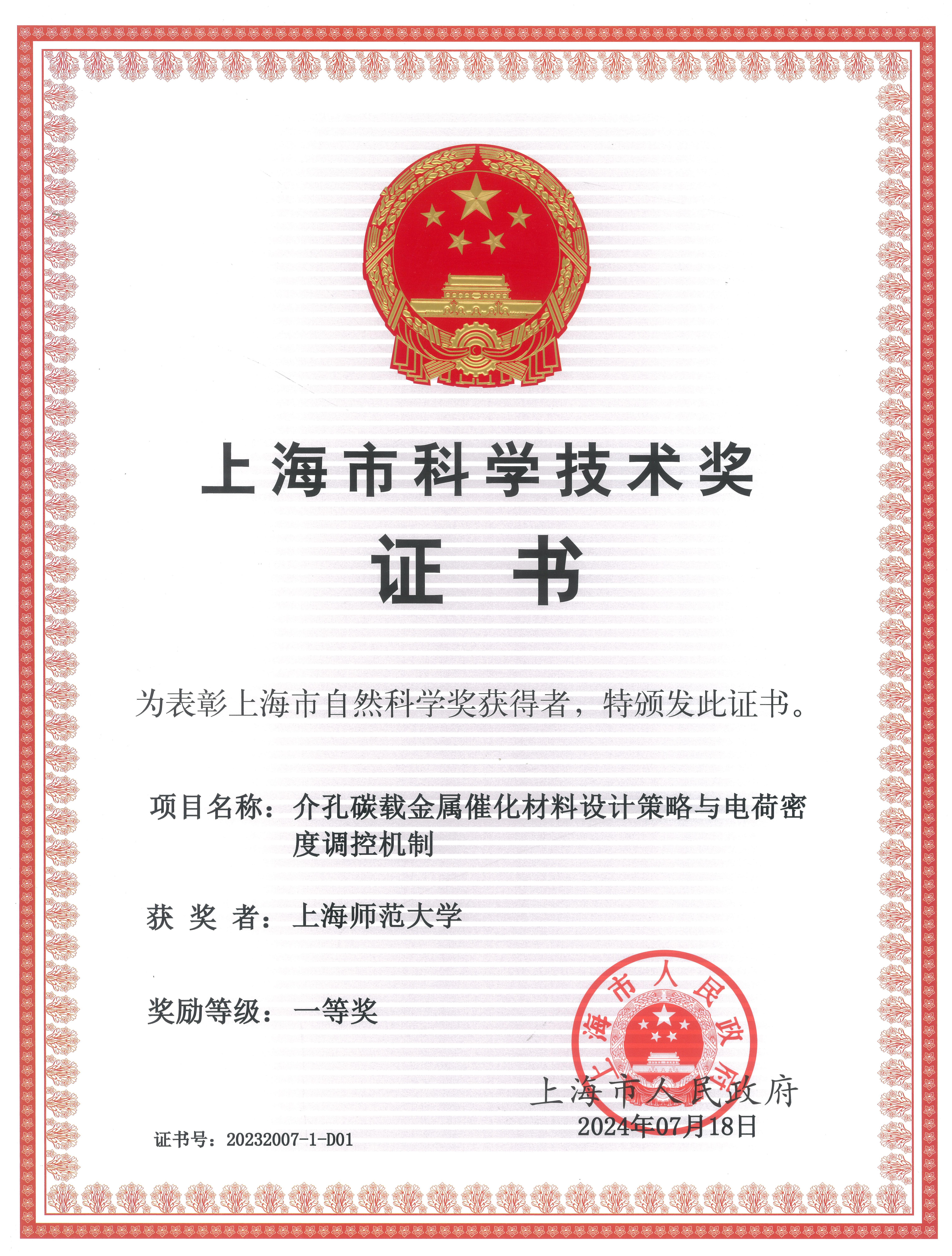 10月23日,上海市科技大会暨科学技术奖励大会隆重举行。科研成果“介孔碳载金属催化材料设计策略与电荷密度调控机制”喜获上海市自然科学一等奖。该项目以上海师范大学为第一完成单位、华东理工大学为第二完成单位,由万颖教授领衔,主要完成人包括上海师范大学海角网 朱小娟副研究员、孙雅飞博士、段林林博士,华东理工大学段学志教授。