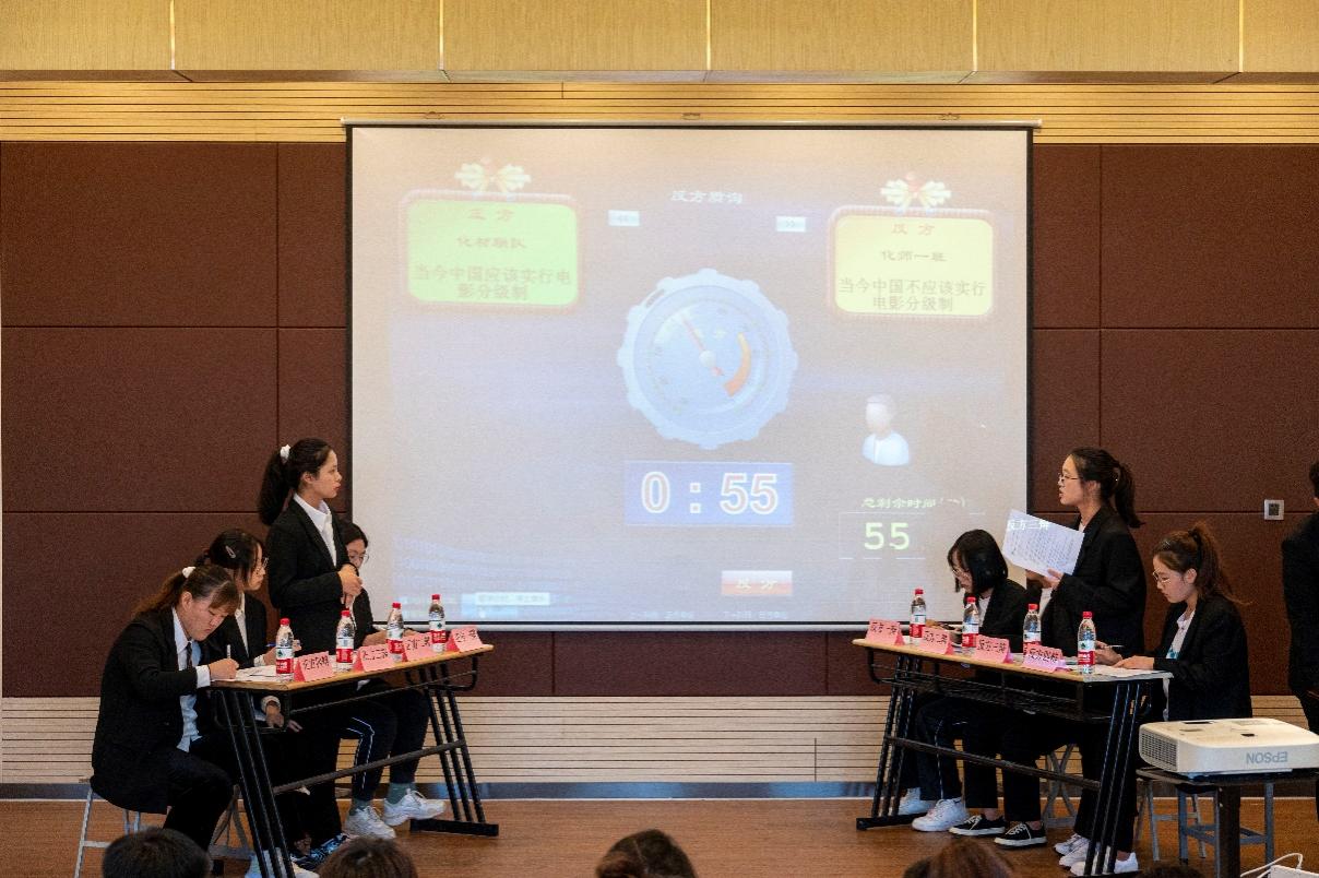 本场比赛辩题为“当今中国应/不应该实行电影分级制度”。正方为化材联队,反方为化师一班代表队。在双方自我介绍并问候现场后,比赛正式开始。