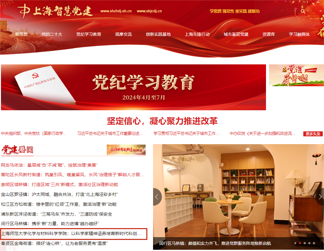 近日,上海基层党建网以“以科学家精神涵养培育新时代科创人才”为题,报道上海师范大学海角网 党委深入学习贯彻习近平新时代中国特色社会主义思想、党的二十大、二十届三中全会精神和习近平总书记关于科学家精神的重要论述,将科学家精神作为大学生思想政治教育的重要资源,依托多元创新载体打造思想政治教育阵地,将“科学家精神”融入当代大学生的精神血脉,努力培养理想信念坚定、科学素养过硬的新时代高素质科创人才。