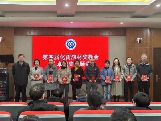 随后,卢书记宣读第四届“化雨润材”奖教金(卓越奖)表彰决定,获奖教师代表分批上台领奖。杨仕平院长为获奖教师颁发荣誉证书并合影留念。
