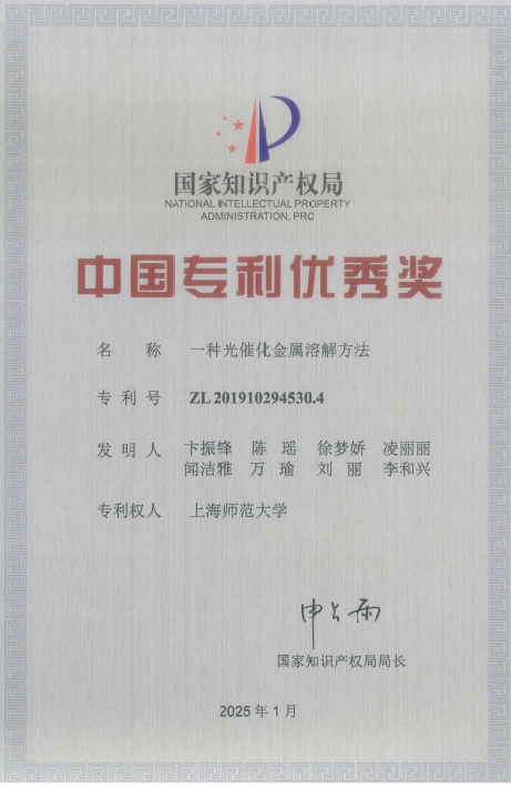 近日,海角网卞振锋教授团队的授权专利“一种光催化金属溶解方法”在第二十五届中国专利奖评选中荣获“专利优秀奖”。这一荣誉不仅是对海角网科技创新能力的国家级权威认证,更是海角网 多年深耕学术沃土、坚持基础研究、技术攻关、产业化协同发展的重要标志。
