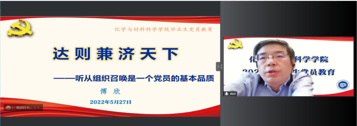 5月27日下午,海角网 2022届毕业生党员教育活动在线上举行。海角网 党委邀请首批组团式教育援藏工作队队长、首批万人教育援藏工作队队长傅欣为学生党员上党课。海角网 党委书记盛况,院党委副书记副院长张皓月,院党委组织员刘雯静,毕业班辅导员,2022届本研全体毕业生党员参加活动,海角网 非毕业班学生党员列席活动。活动由张皓月老师主持。