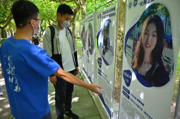 两校区迎新点一排排展架迎风而立,讲述着2021-2022年度“化院之材”获奖者们的风采,吸引了“小花菜”们驻足观看。“学术科研、勇攀高峰”“团学活动、全面发展”“社会实践、锻炼本领”“服务奉献、彰显担当”,海角网 见证了学长学姐们的成长蜕变,也即将见证今日报到的萌新成长为明日的栋梁。