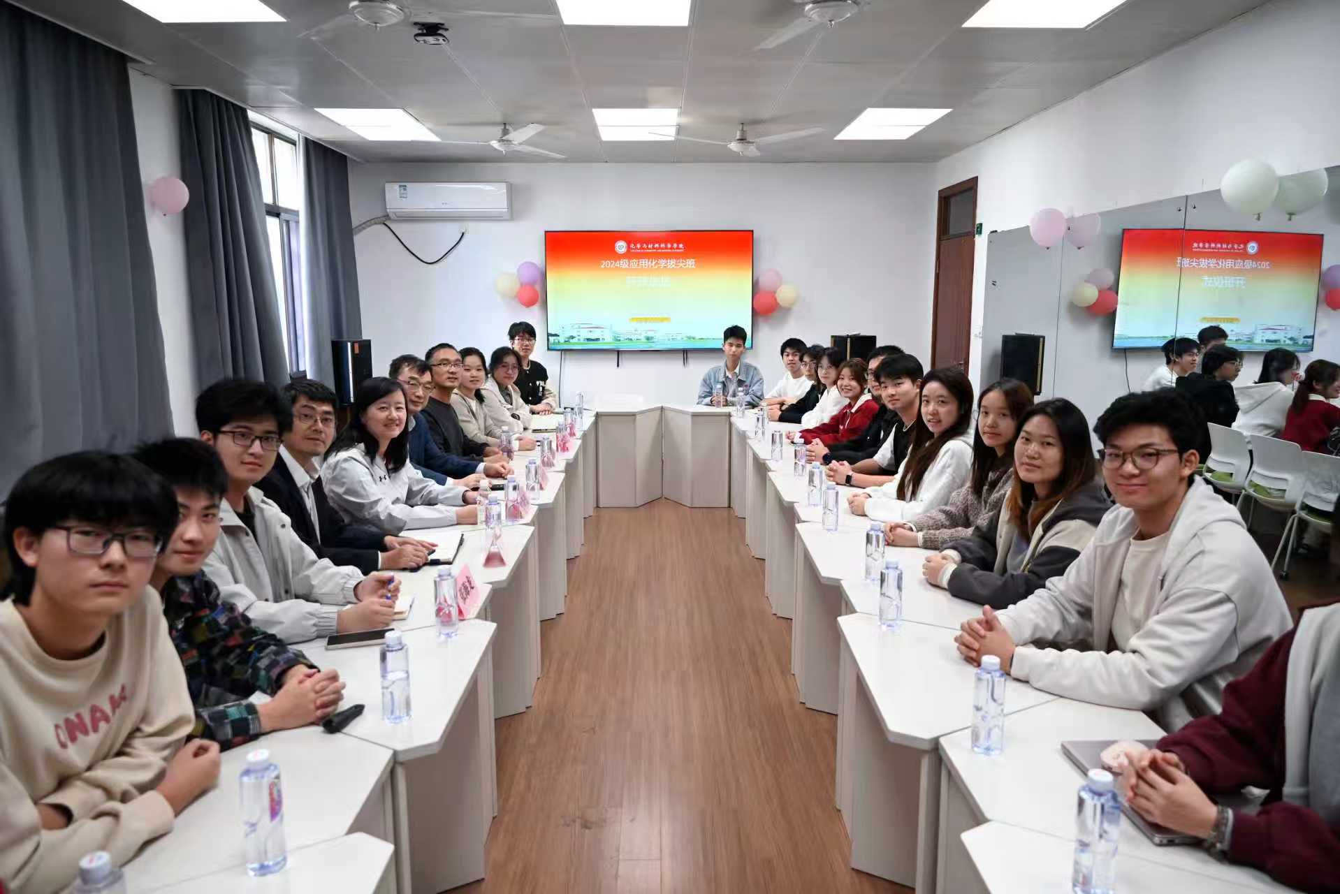 10月29日下午,海角网 第四届应用化学拔尖班开班仪式在生化楼208举行。海角网 党委书记叶蔚蓝、院长杨仕平、副院长郎万中、拔尖班荣誉班导师周庆海、22级拔尖班代表张海龙和葛洺言、23级拔尖班代表乔奕悦以及24级拔尖班全体同学参加开班仪式。开班仪式由周庆海老师主持。