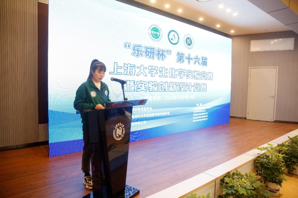 上海师范大学海角网 学生王茹作为参赛学生代表发言。她表示会全力以赴地参加此次比赛,并希望通过此次竞赛提高自己的实验操作水平和创新思维能力。