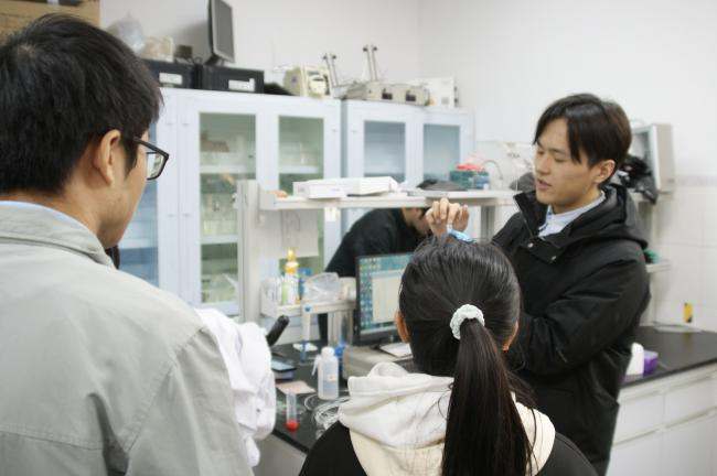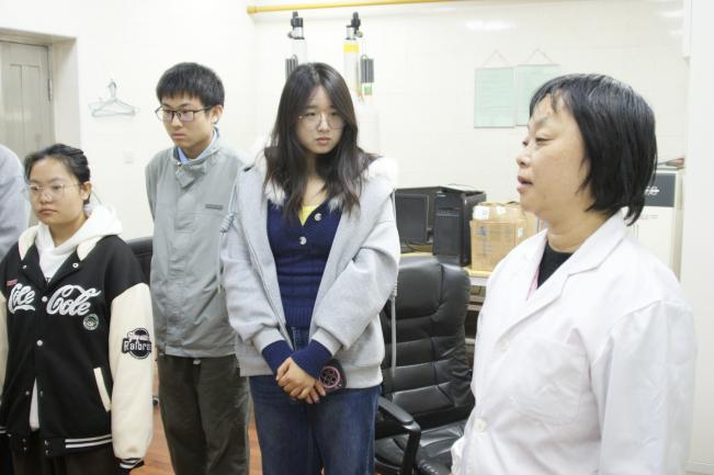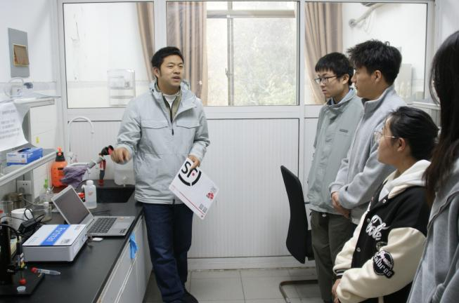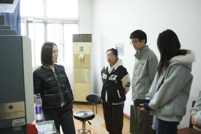 随后,同学们在支部教师与研究生志愿者的全程带领下,依次走进核磁共振、透射电镜、电化学实验室等6个重点科研平台。负责教师现场进行仪器操作演示,细致讲解设备工作原理与应用场景,并在参观过程中积极回应学生疑问,展开交流互动。