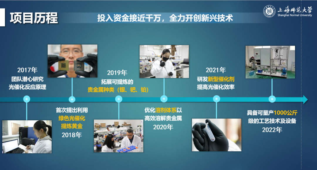 点金之光项目团队秉承“先进,专业,环保,服务至上”的理念,“点石成金,变废为宝”的宗旨,致力于发展一项新型环保安全成本低廉的贵金属回收技术,实现技术核心竞争力的打造,打破国外专利封锁。目前该技术已成功在Nature子刊:Nature Sustainability上进行发表,同步完成国际专利和国家级专利申请。作为迄今为止世界上较为先进、清洁、简便、廉价的一种贵金属回收技术,有望带来贵金属冶炼的颠覆性变革,并在光催化理论发展和应用开发方面具有里程碑意义。